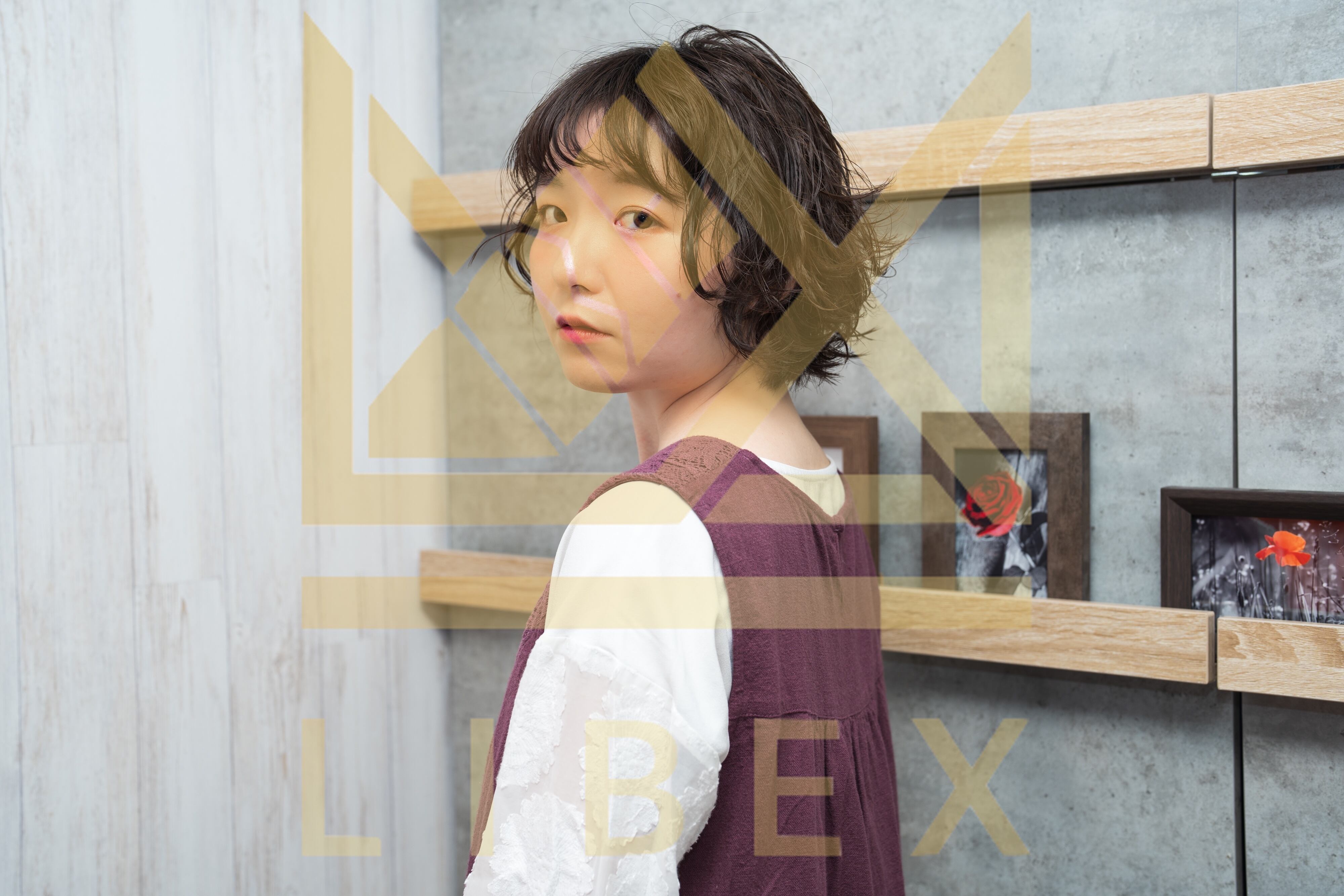 人物, ポートレート, 女性, アジア人, 女性モデル, モデル, 日本人, 1人, 一人, 20代, 若い, 屋内, 室内 スタジオ, 白バック, 白背景, メイク, ヘアメイク, ビューティー, ビューティ, 美容, メイクアップ 化粧, 化粧品, キュート, ボーイッシュ,撮影, スタイリング, サロンモデル, カットモデル, セーター, 冬, 秋, きれい, かわいい, 美人, オレンジ, オレンジメイク, ポーズ, バストアップ, 笑顔, コピースペース, 縦, 縦位置