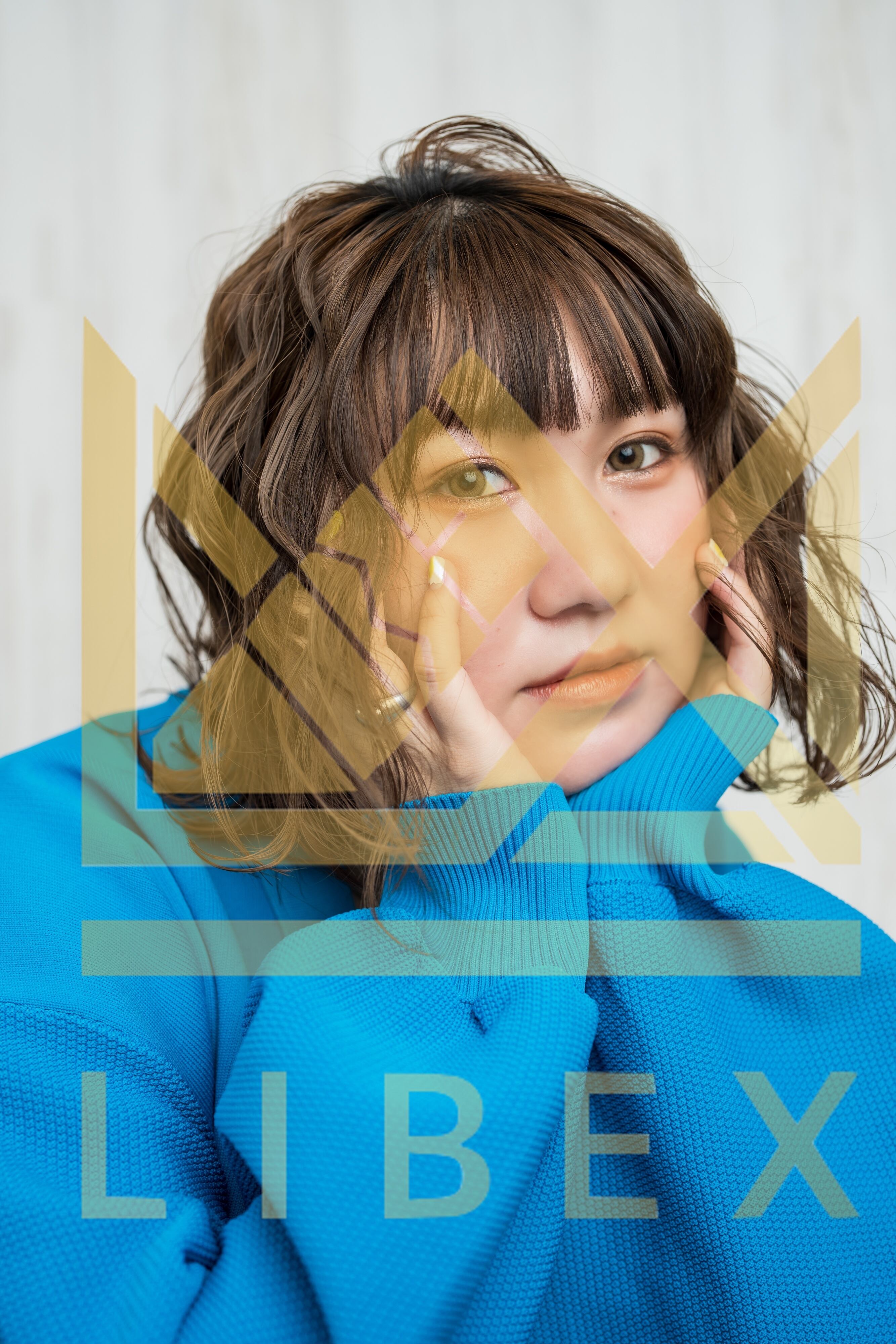 人物, ポートレート, 女性, アジア人, 女性モデル, モデル, 日本人, 1人, 一人, 20代, 若い, 屋内, 室内 スタジオ, 白バック, 白背景, メイク, ヘアメイク, ビューティー, ビューティ, 美容, メイクアップ 化粧, 化粧品, キュート, ボーイッシュ,撮影, スタイリング, サロンモデル, カットモデル, セーター, 冬, 秋, きれい, かわいい, 美人, オレンジ, オレンジメイク, ポーズ, バストアップ, 笑顔, コピースペース, 縦, 縦位置