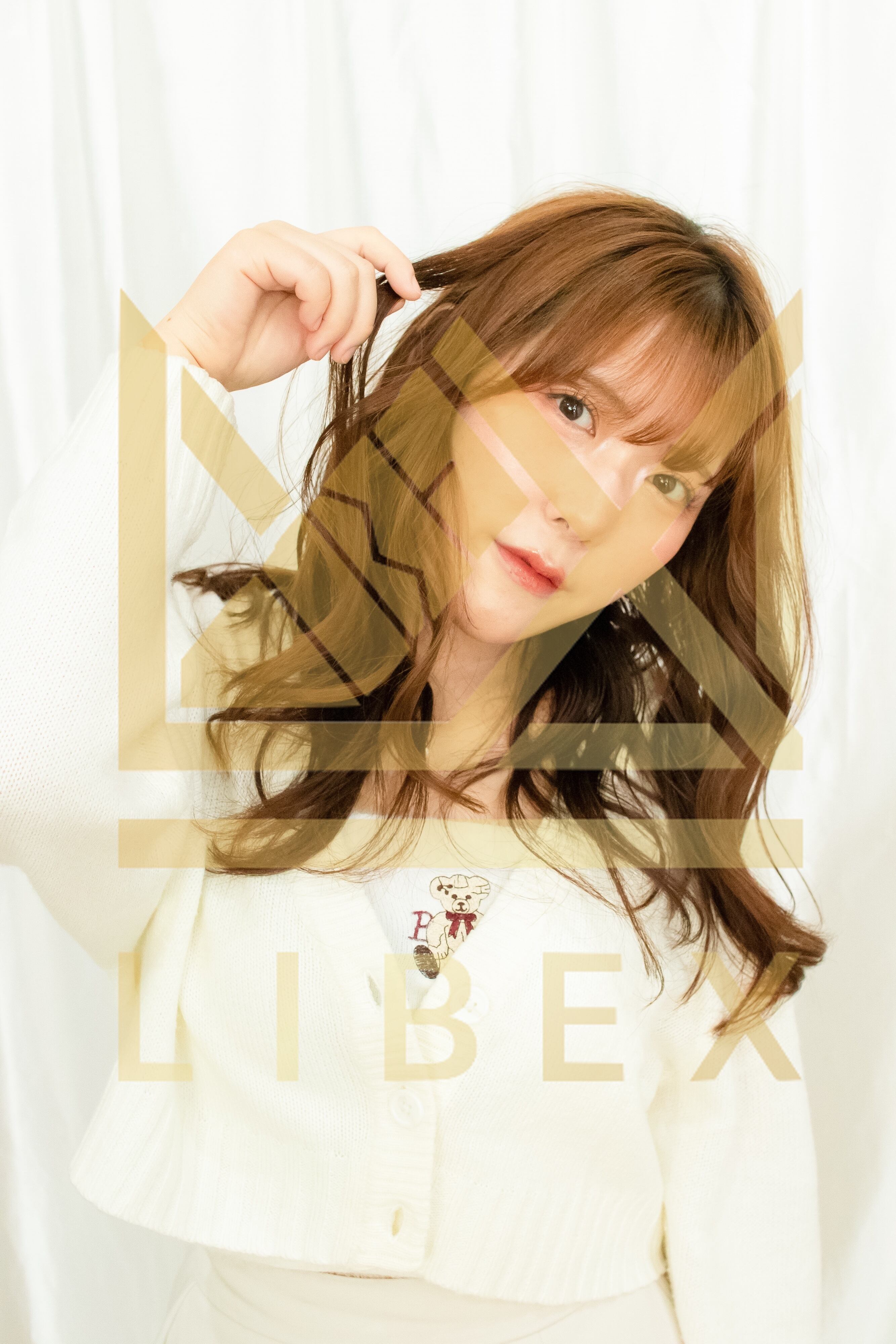人物, ポートレート, 女性, アジア人, 女性モデル, モデル, 日本人, 1人, 一人, 20代, 若い, 屋内, 室内 スタジオ, 白バック, 白背景, メイク, ヘアメイク, ビューティー, ビューティ, 美容, メイクアップ 化粧, 化粧品, キュート, ボーイッシュ,撮影, スタイリング, サロンモデル, カットモデル, セーター, 冬, 秋, きれい, かわいい, 美人, オレンジ, オレンジメイク, ポーズ, バストアップ, 笑顔, コピースペース, 縦, 縦位置